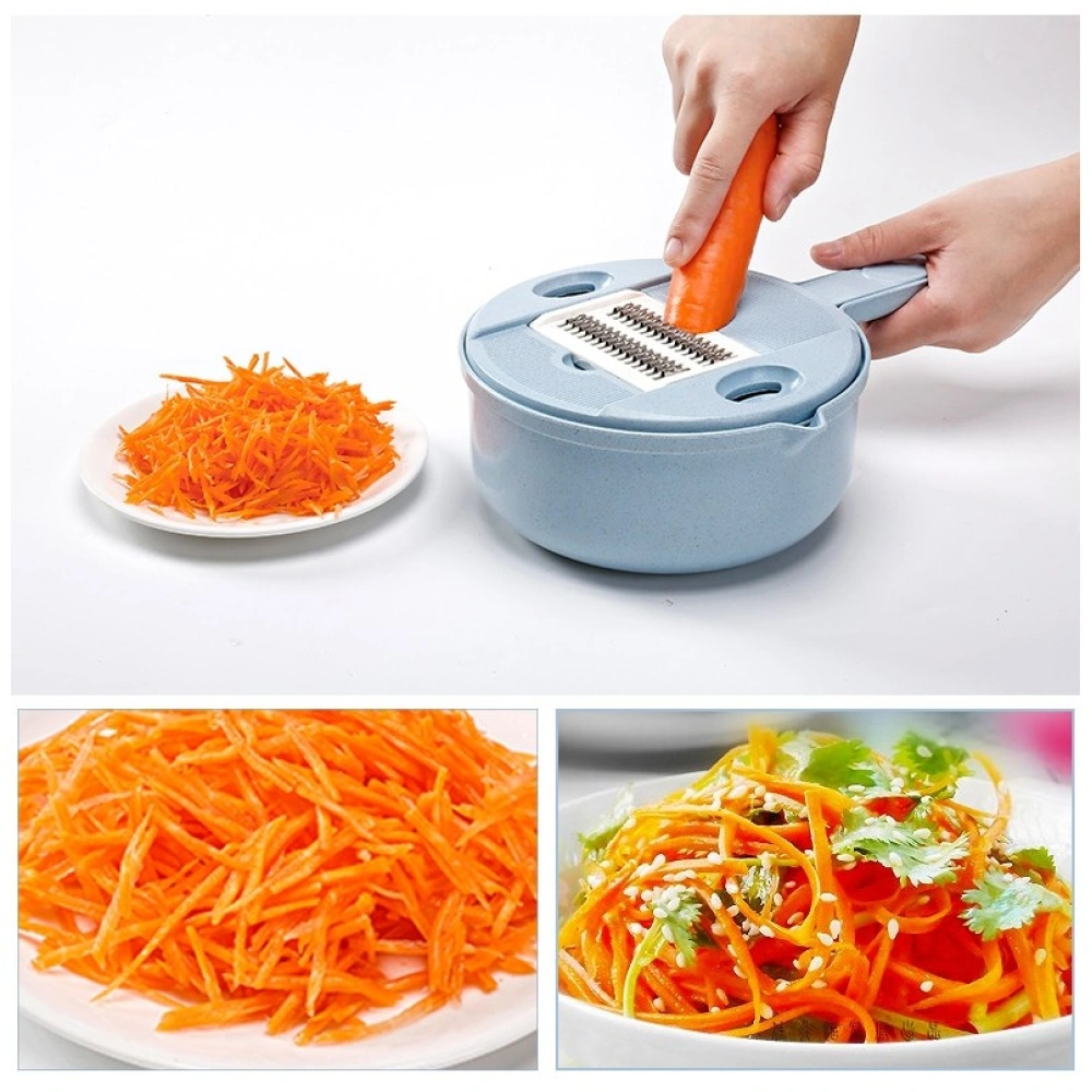 Razatoare multifunctionala pentru legume, fructe, branzeturi, 10 piese, 27.6x8 cm, albastru